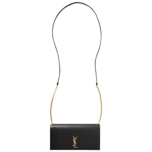 Saint Laurent Monogram Kate Ysl Phone Holder with Strap In Smooth Black Leather Cross Body Bag