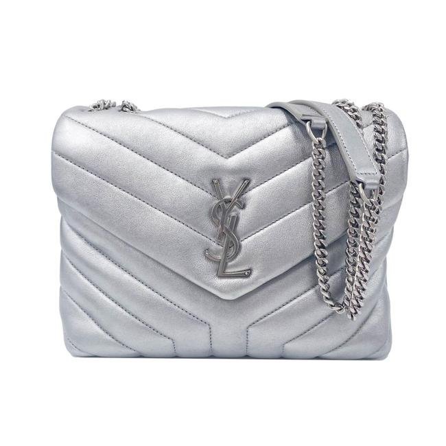 Saint Laurent Monogram Loulou Calfskin Y Quilted Monogram Small Chain Satchel Silver Leather Shoulder Bag