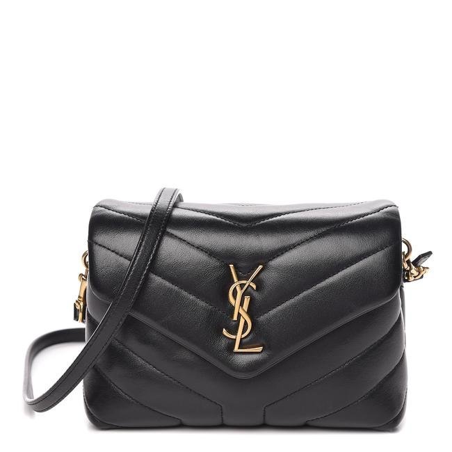 We guarantee this is an authentic SAINT LAURENT Calfskin Y Quilted Monogram Toy Loulou Crossbody Bag Black or 100% of your money back. This chic shoulder bag is crafted of beautiful smooth calfskin leather in black. The crossbody features a shoulder strap with aged gold hardware. The flap opens to a compact black fabric multi-compartment interior. This is an ideal shoulder bag for day or evening with the classic chic of Saint Laurent!