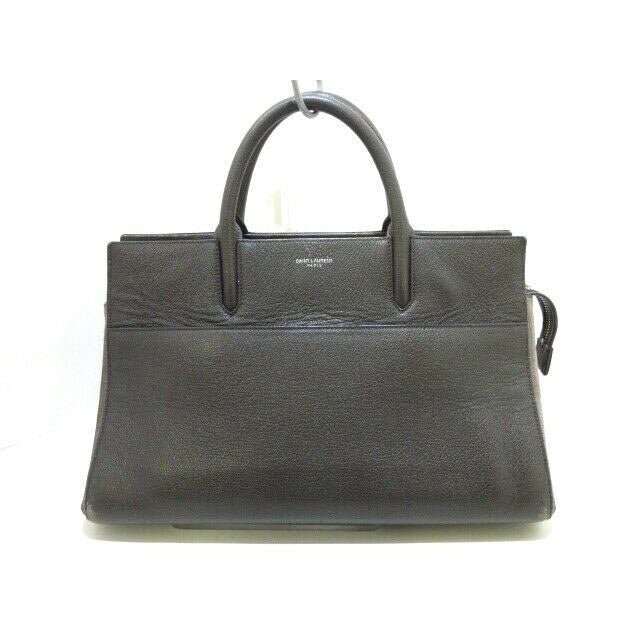 SAINT LAURENT PARIS Cabas Rive Gauche Dark Brown Handbag