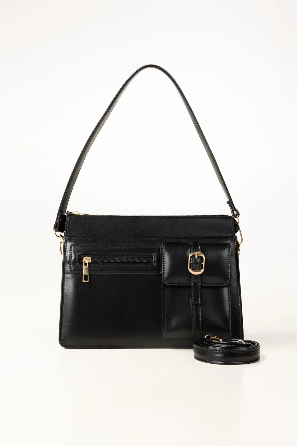 Elevate your everyday style with this timeless classic black faux feather shoulder bag. Designed for the modern minimalist, this structured bag features a smooth faux leather finish with clean lines and gold-tone hardware for a touch of elegance.