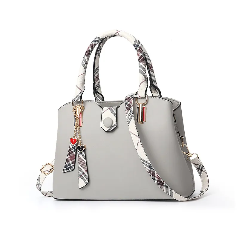 Trendy Plaid-Handle Leather Handbag for Women